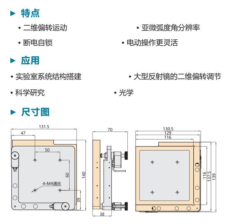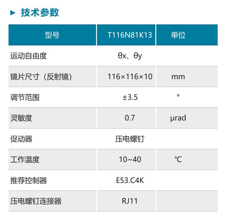 T116N81K13系列压电镜架可进行反射镜片的二维θx、θy偏转运动调节