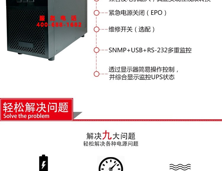 UPS不间断电源3000VA/2400W不含电池LCD塔式长效机USB/RS232 是否支持加工定制 | 否 | ||