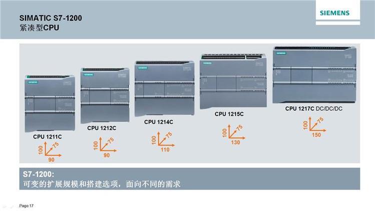 高性能,高集成,更简约 SIMATIC S7-200 SMART 是西门子为中国客户量身定制的一款高性价比小型 PLC 产品。结合西门子 SINAMICS 驱动产品及 SIMATIC 人机界面产品,以 S7-200 SMART 为核心的小型自动化解决方案将为客户创造更多的价值。性能数据CPU模块全新的 S7-200 SMART 带来两种不同类型的 CPU 模块,标准型和经济型,全方位满足不同行业、不同客户、不同设备的各种需求。标准型作为可扩展 CPU 模块,可满足对 I/O 规模有较大需求,逻辑控制较为复杂的应用 ;而经济型 CPU 模块直接通过单机本体满足相对简单的控制需求。产品亮点编辑机型丰富,更多选择提供不同类型、I/O 点数丰富的CPU 模块,单体I/O 点数高可达60 点,可满足大部分小型自动化设备的控制需求。另外,CPU 模块配备标准型和经济型供用户选择,对于不同的应用需求,产品配置更加灵活,大限度的控制成本。选件扩展,定制新颖的信号板设计可扩展通信端口、数字量通道、模拟量通道。在不额外占用电控柜空间的前提下,信号板扩展能更加贴合用户的实际配置,提升产品的利用率,同时降低用户的扩展成本。高速芯片,性能配备西门子专用高速处理器芯片,基本指令执行时间可达0.15 μs ,在同级别小型PLC 中。一颗强有力的“芯”,能让您在应对繁琐的程序逻辑,复杂的工艺要求时表现的从容不迫。以太互联,经济便捷CPU 模块本体标配以太网接口,集成了强大的以太网通信功能。一根普通的网线即可将程序下载到PLC 中,方便快捷,省去了专用编程电缆。通过以太网接口还可与其它CPU 模块、触摸屏、计算机进行通信,轻松组网。三轴脉冲,运动自如CPU 模块本体多集成3 路高速脉冲输出,频率高达100 kHz,支持PWM/PTO输出方式以及多种运动模式,可自由设置运动包络。配以方便易用的向导设置功能,快速实现设备调速、定位等功能。