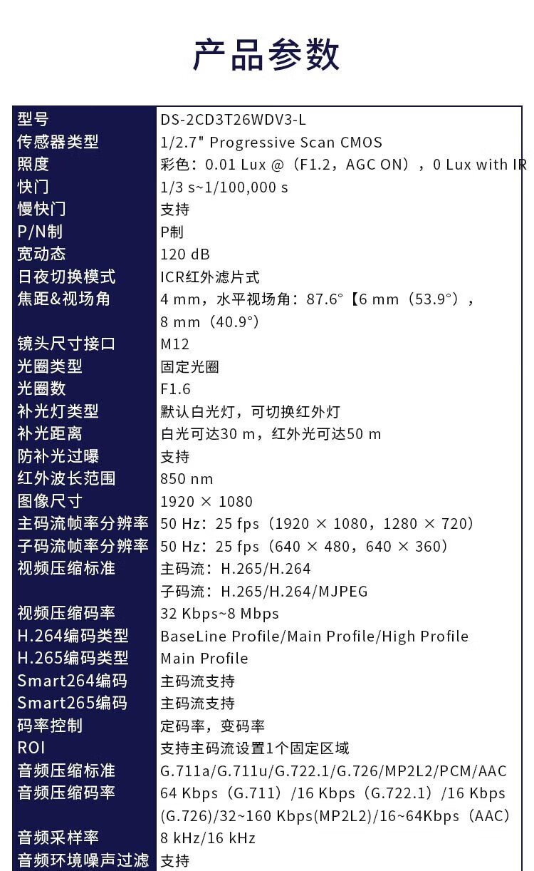 主码流帧率分辨率 | 50 Hz | ||
