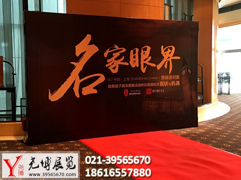 上海桁架背景搭建租赁,会议背景板出租,舞台会议背景搭建。我们上海尧博展览器材有限公司在上海及其周边城市都可提供标准展位、书画展、桁架、会议背景、签到板的出租布置。我们在上海已有一批长期合作的客户,为客户做好每一场展会是我们的宗旨。