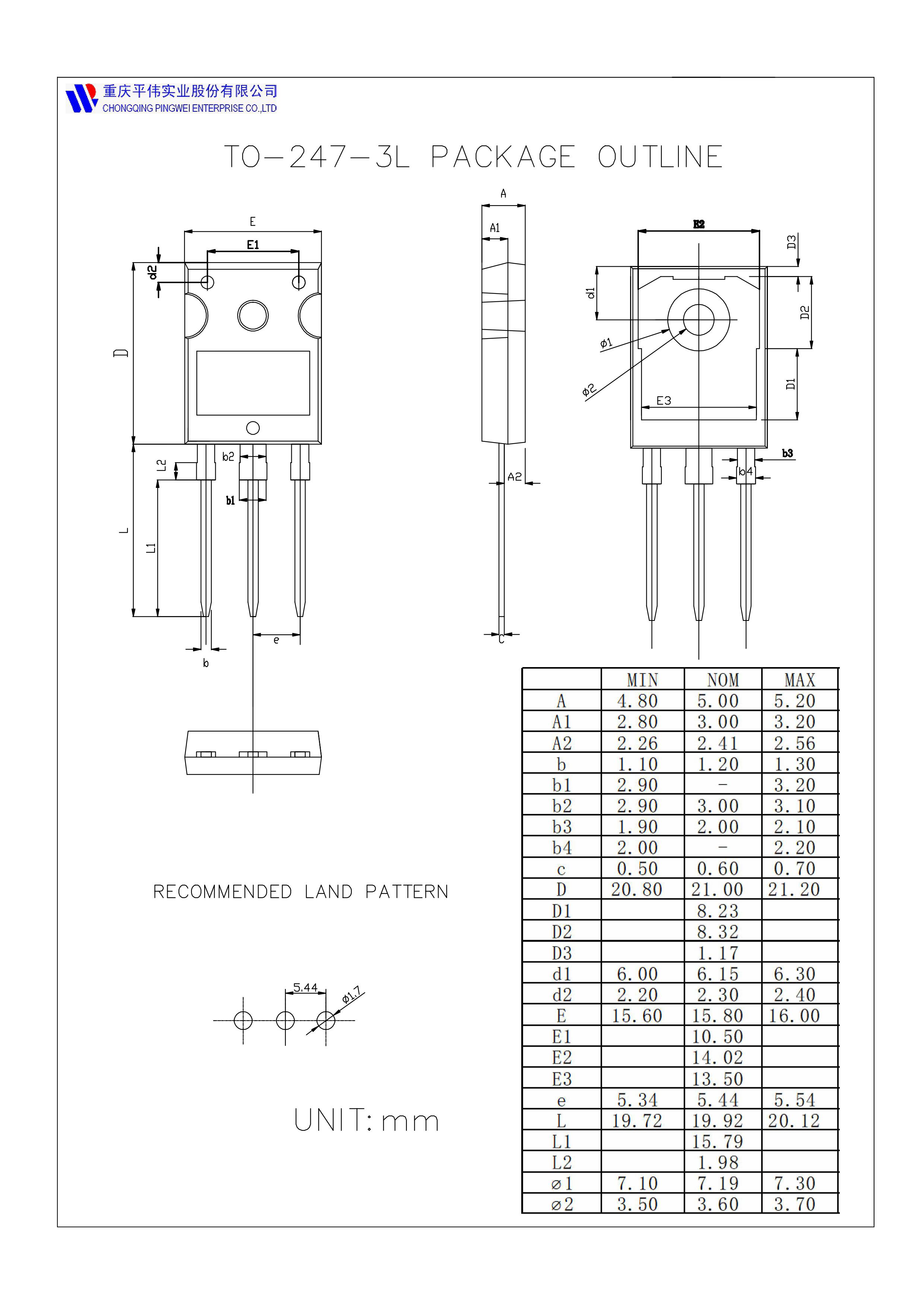 本品采用内置大尺寸芯片,具有适应高电压低内阻高频高效恢复等电气特性特点。通用于电源、电器、适配器、充电器、充电桩、工控、医疗设备、工业特种电源、高频电源、风光储新能源、逆变器、伺服电机马达等产品电路作控制、开关、整流、放大、钳位、防反接、防逆回流等作用。PY/平伟大芯片高电压大电流低漏电的分立式功率整流开关管SC1R0N170Y。