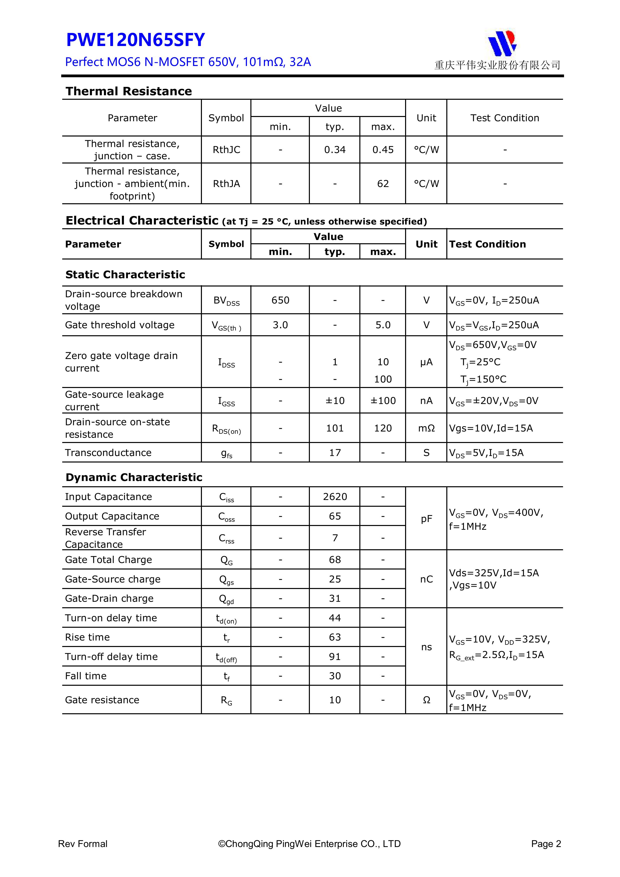 “页面标价非成交价,请联系详询报价” PY/平伟实业股份 全新原厂原装高频高压功率控制开关管场效应管,650V,32A,0.101Ω,N-Channel,高压MOSFET:PWE120N65SFY;电压Vds:650V;电流Id:32A;内阻Rds(on):101mΩ;封装方式:TO-247-3L;最小包装数量:600pcs/盒-管装。