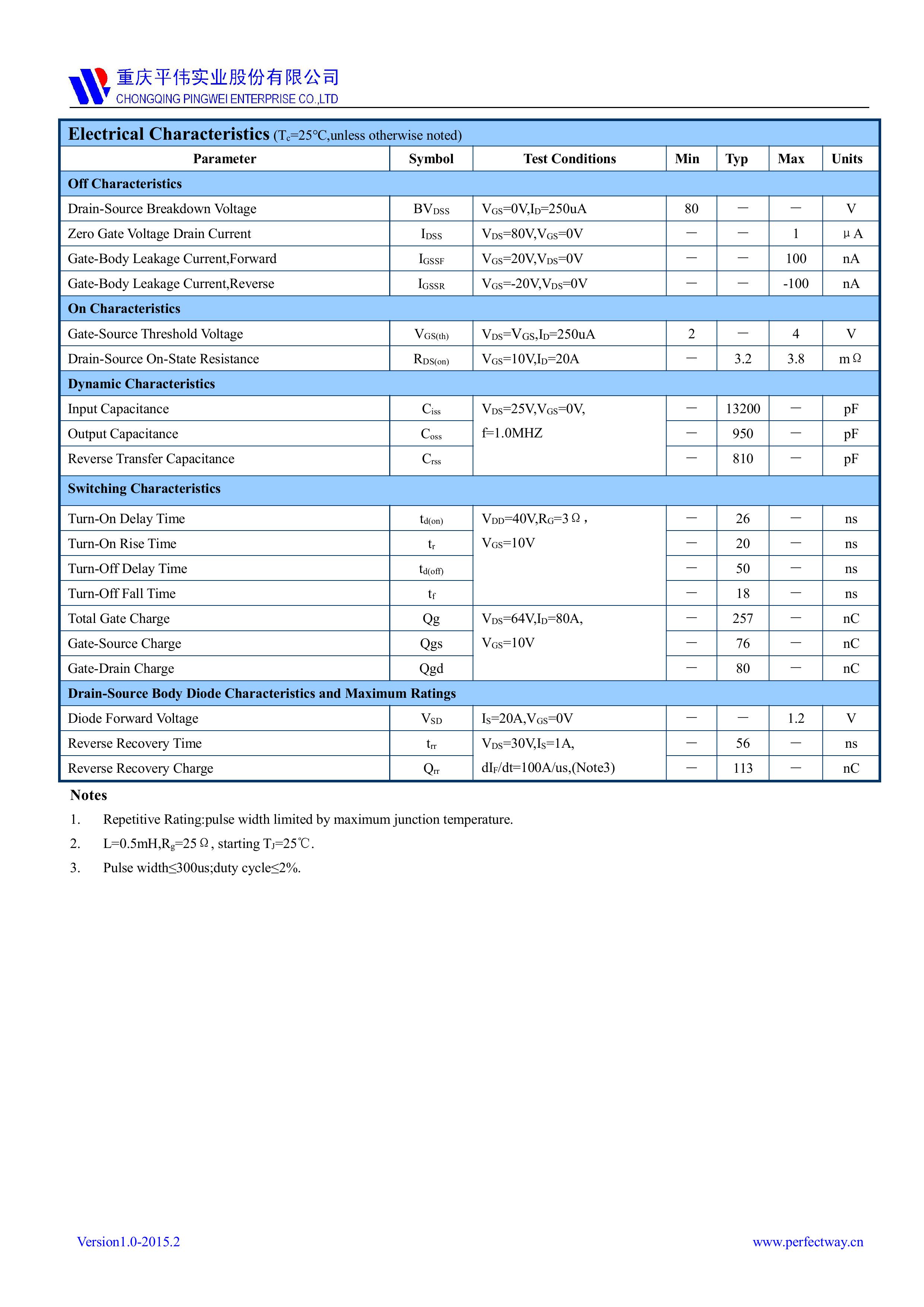 本品采用内置大尺寸芯片,具有适应高电压低内阻高频高效恢复等电气特性特点。通用于电源、电器、适配器、充电器、充电桩、工控、医疗设备、工业特种电源、高频电源、风光储新能源、逆变器、伺服电机马达等产品电路作控制、开关、整流、放大、钳位、防反接、防逆回流等作用。PY/平伟大芯片中低电压大电流低内阻低漏电的分立式功率整流晶体开关管PW038N08Y。