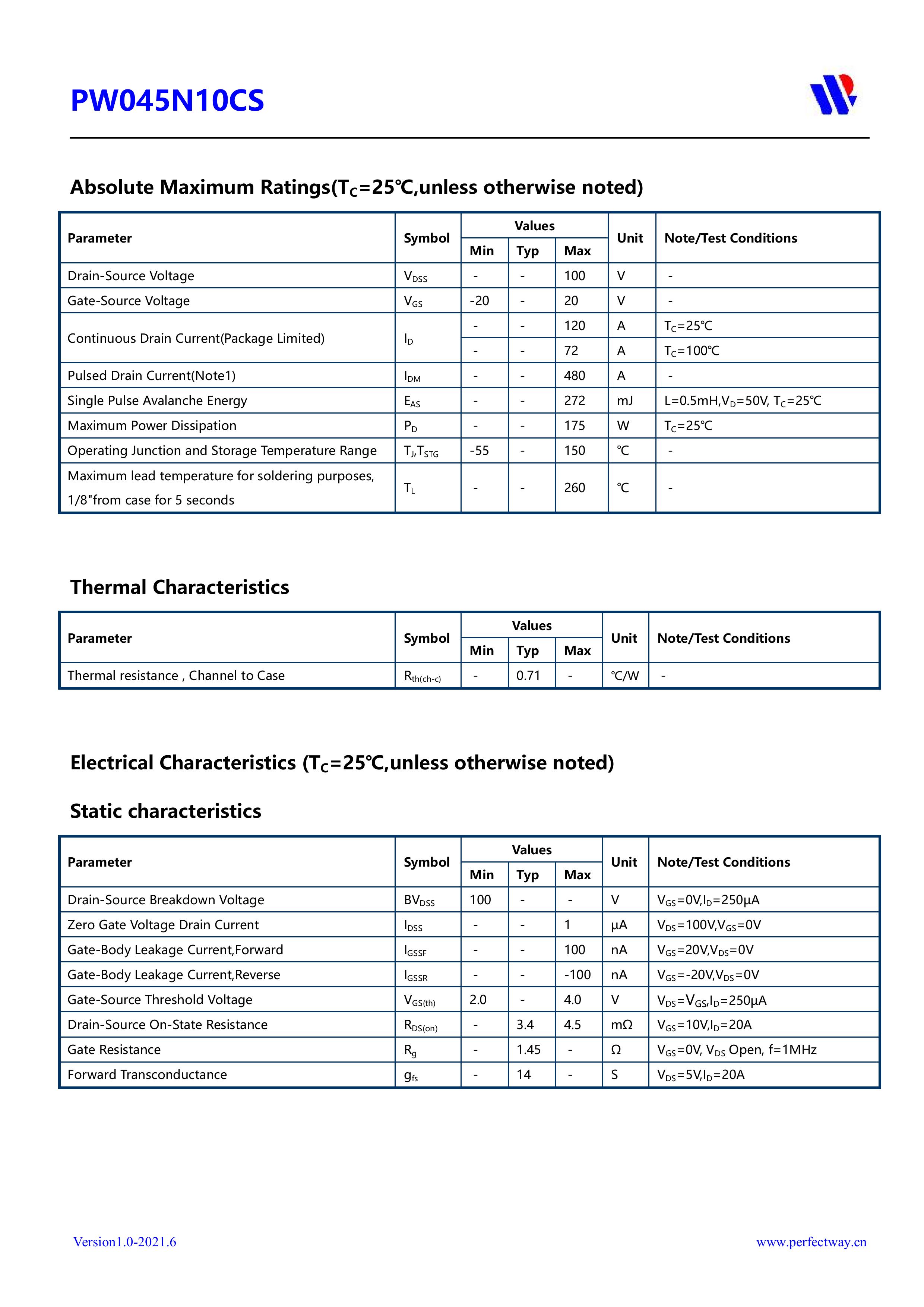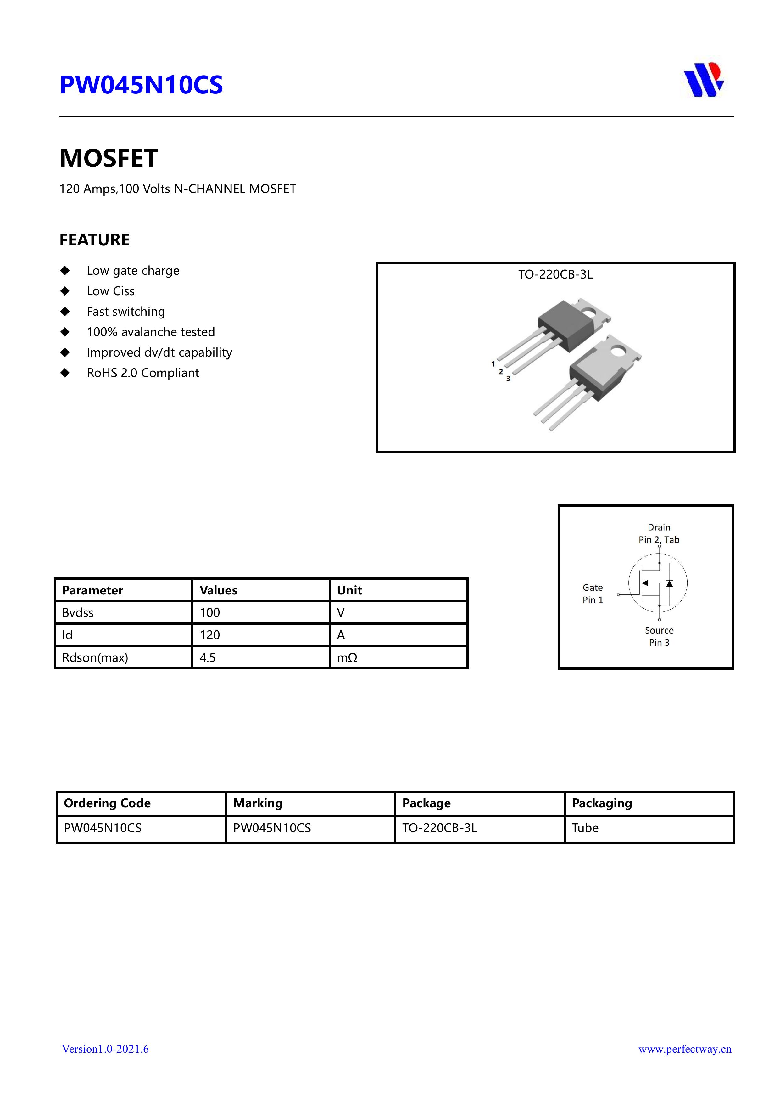 本品采用内置大尺寸芯片,具有适应中低电压低内阻损耗高频高效恢复等电气特性特点。通用于电源、电器、适配器、充电器、充电桩、工控、医疗设备、工业特种电源、高频电源、风光储新能源、逆变器、伺服电机马达等产品电路作控制、开关、整流、放大、钳位、防反接、防逆回流等作用。PY平伟大芯片中低电压大电流低内阻低漏电的分立式功率整流晶体开关管PW045N10CS。
