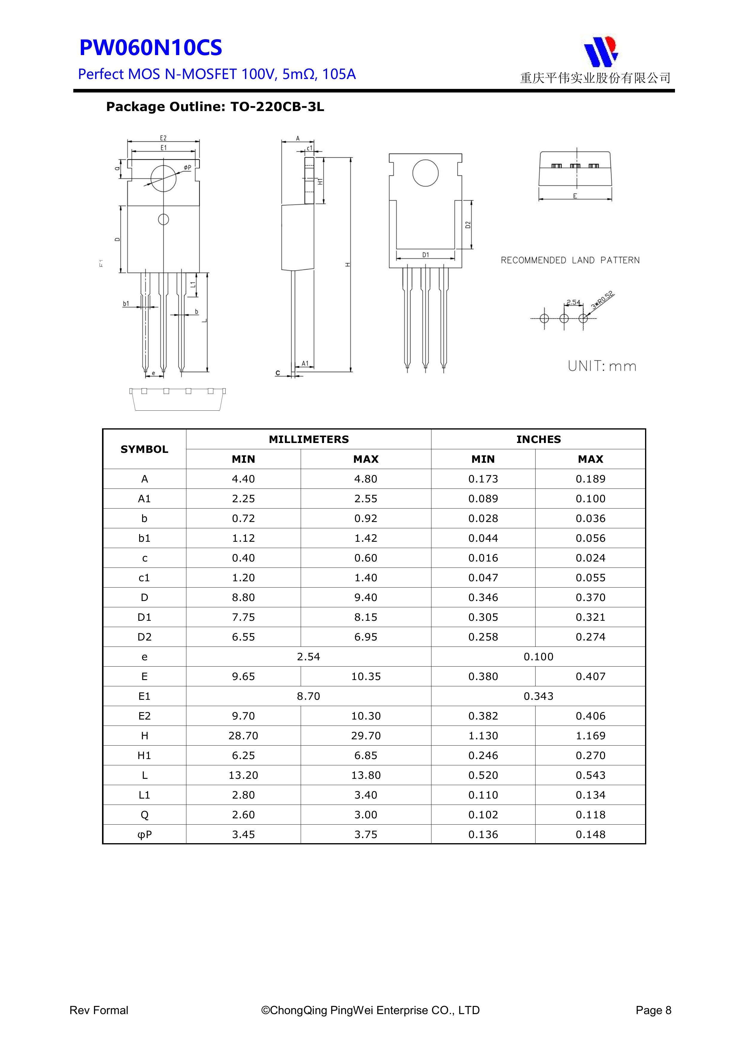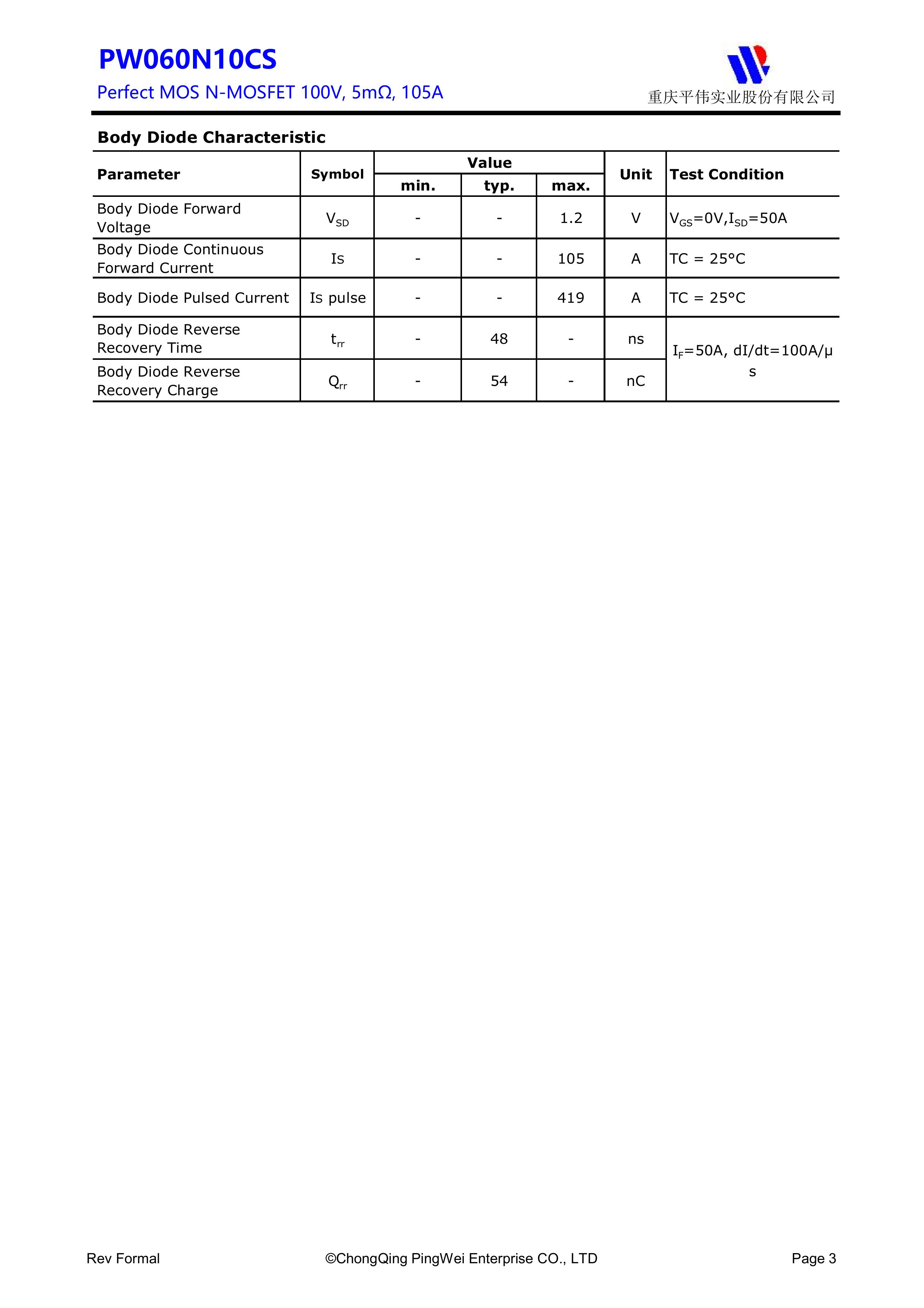 本品采用内置大尺寸芯片,具有适应中低电压低内阻损耗高频高效恢复等电气特性特点。通用于电源、电器、适配器、充电器、充电桩、工控、医疗设备、工业特种电源、高频电源、风光储新能源、逆变器、伺服电机马达等产品电路作控制、开关、整流、放大、钳位、防反接、防逆回流等作用。PY平伟大芯片中低电压大电流低内阻低漏电的分立式功率整流晶体开关管PW060N10CS。