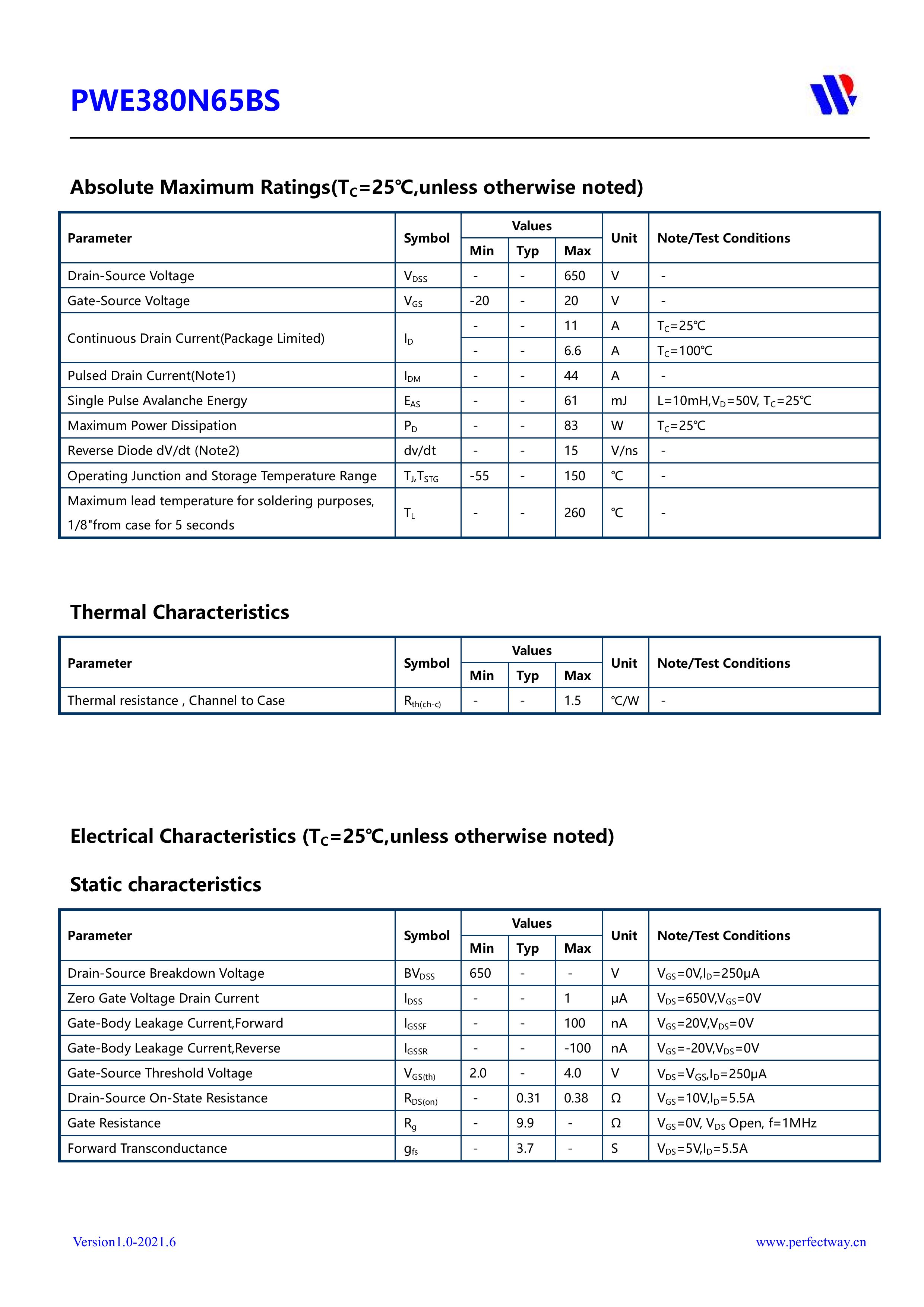 本品采用内置大尺寸芯片,贴片式封装,,具有适应高电压低内阻损耗高频高效恢复等电气特性特点。通用于电源、小家电、锂电池、马达电机、电动工具、无人机、电器、适配器、充电器、逆变器、充电桩、特种电源、高频电源、风光储新能源、医疗设备、工业工控等产品电路作电子开关、控制、整流、放大、钳位、防反接、防逆回流等作用。PY平伟大芯片高电压大电流低内阻低漏电的分立式功率整流晶体开关管PWE380N65BS。