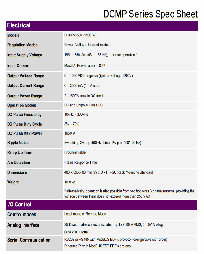美国T&C POWER脉冲直流电源DCMP-1500规格书: