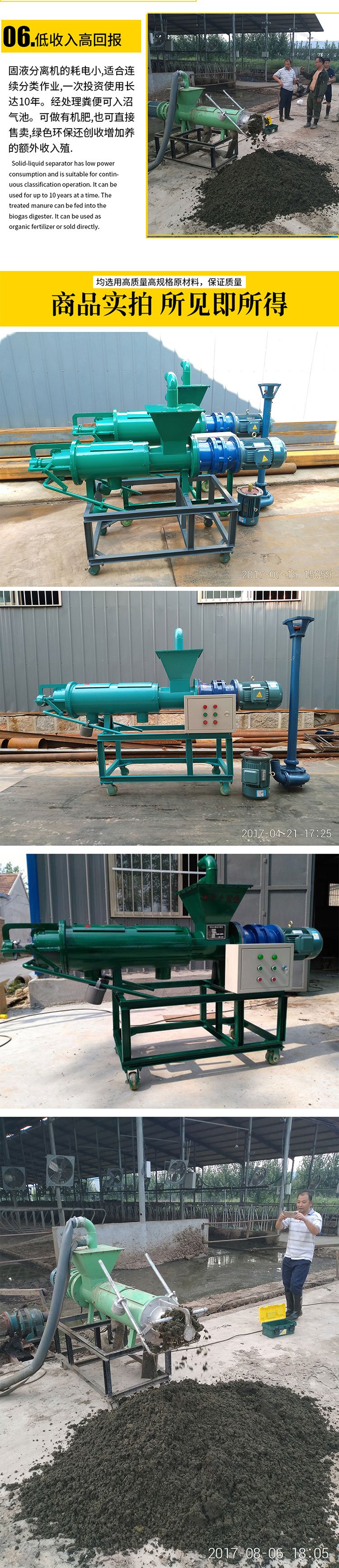 实用性:该系列机渣液分离速度快,经分离后的粪渣含水量在50-60之间,出渣量及含水量可调整,可适用不同成份的饲料(如草及精饲料),便于运输,其固粒物很适合作为鱼饲料和有机肥的原料等。全自动干湿分离机 粪便变收益 挤干式固液分离机
