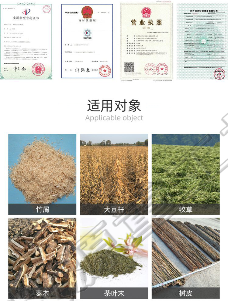 适用原料 | 木屑、秸秆、有机肥、活性炭 | ||