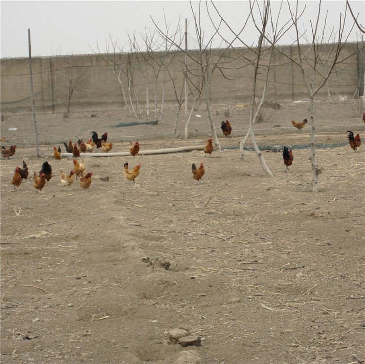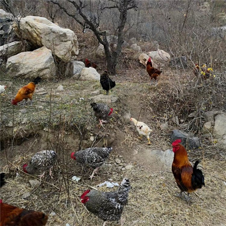 鸡在圈围的院林地散养,能捕食野生杂草和生物昆虫,改变食物结构,肉质品味高。