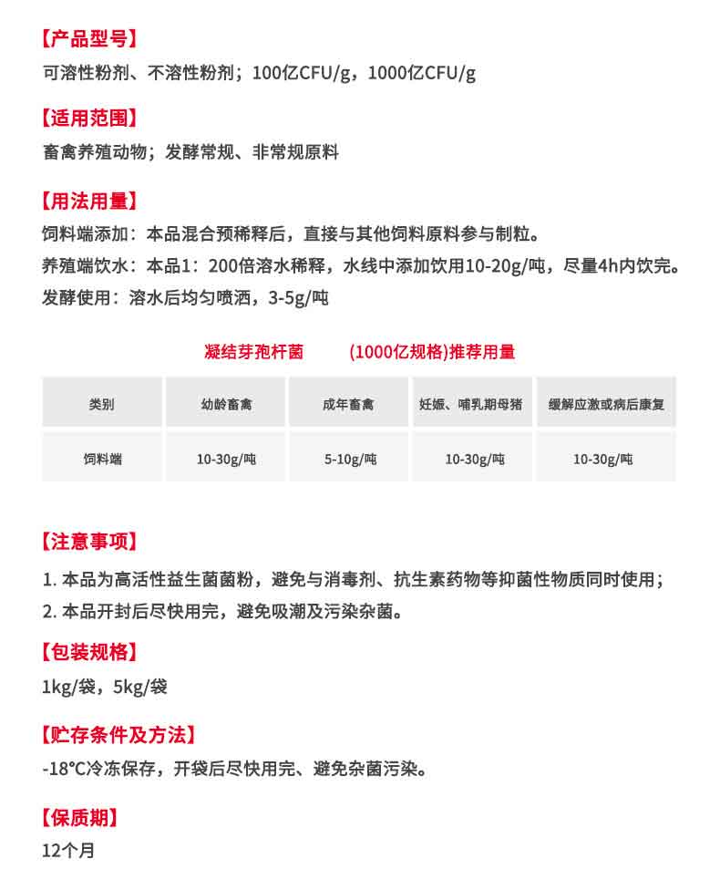 有效物质含量 | 凝结芽孢杆菌% | ||