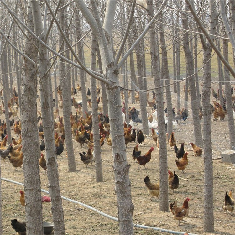 饲喂中做到料、水不断,自由采食。网床内饲养,鸡活动范围小、鸡体能量消耗少,增重加快;鸡在圈围的院林地散养,能捕食野生杂草和生物昆虫,改变食物结构,肉质品味高。