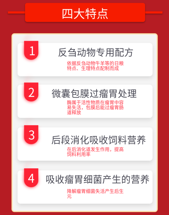 产品作用 | 帮助牛羊消化吸收 | ||