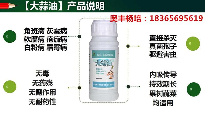 病害高发期同时复配大蒜油1000~1500倍或其它药剂,中草药制剂可适当提高浓度连续喷雾2~3次。