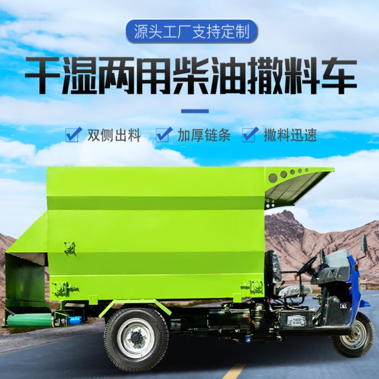 撒料车的主要功能是将成品日粮直接抛撒在饲喂区域内一次性完成饲喂,广泛用于农牧业养殖区,大中型饲养场和规范社区饲养场的饲喂作业,可将各种牧草,农作物秸秆,青贮饲料等纤维性饲料混合搅拌均匀后,投入本车内,进行投喂作业。使用简单方便,易于操作,产品质量可靠,经久耐用,撒料过程中可根据用户的圈宿牲畜的密度调节饲喂料,使用效率高,省时省力,节省养殖场空间。