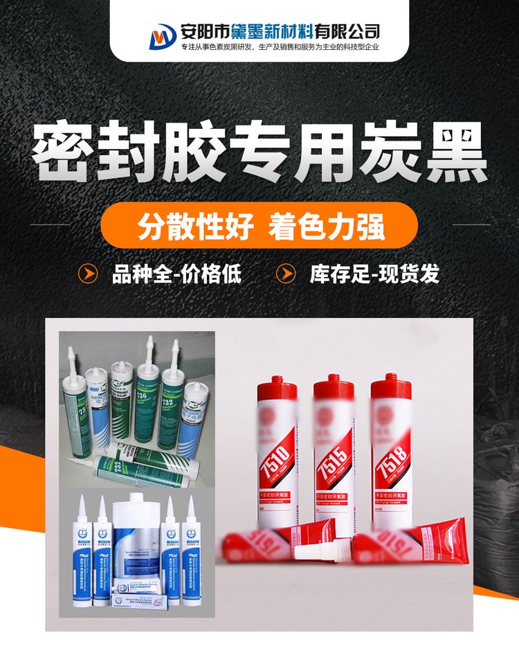 1)单组分硅酮胶:硅酮密封胶由于良好的粘接性能以及优异的耐UV,耐老化性能,广泛应用于建筑结构粘接密封以及工业各行业粘接密封。硅酮密封胶用量非常大,因此,碳黑也广泛应用在单、双组分的硅酮密封胶。在单组分密封胶中,一般是添加色膏。通常的做法是用低粘度的硅油或107和粉末碳黑按比例混合均匀,脱水,然后用三辊机研磨一至两遍,直到色膏的细度合格为止。在单组分硅酮密封胶中,推荐使用分散好、黑度好的型号是DM1630、DM1950。色膏参考配比是硅油:碳黑=50:20。在大约一吨的密封胶中添加50kg就足够黑了。