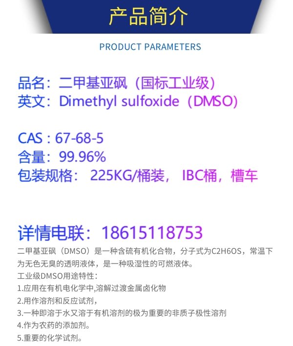 夸克现货供应DMSO 厂家代理 高纯度99.9二甲基亚砜 桶装 出口 量大 兴发/东丽 原装二甲基亚砜