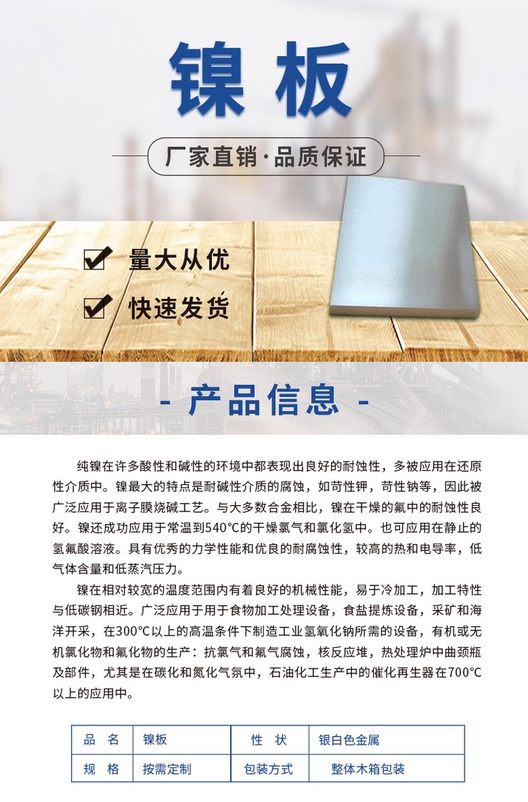 高纯镍板N6纯镍江耐镍合金系列品质保证特殊复合金属材料