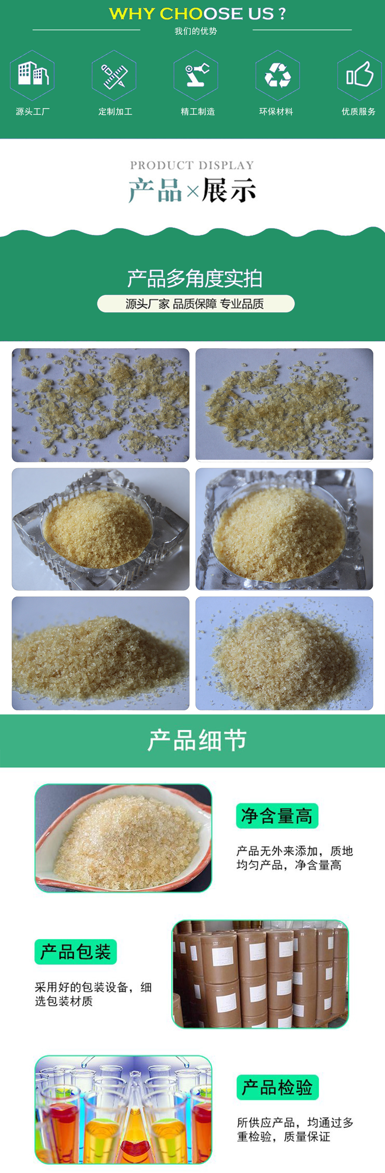 • 规格:无色至淡黄色颗粒