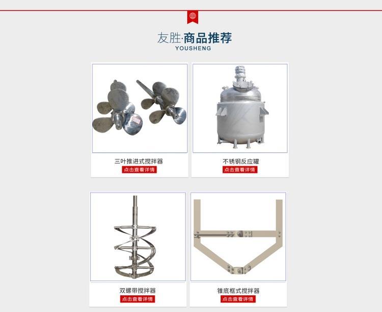 淄博友胜化工设备有限公司是国内较早从事搅拌设备设计、制造和新型搅拌器研发的企业之一,公司拥有多名长期从事搅拌设备设计、研发、制造的工程技术专家,在多年的实践工作中,积累了丰富的设计制造经验;并且依靠计算机辅助设计、计算(公司自主开发的搅拌功率计算软件、搅拌轴强度计算软件等计算软件近十套),因此能为您提供最可靠、最经济的搅拌设备。同时,公司具有非常强的加工能力和完善的检测手段,从而能够为您提供最优异的产品。