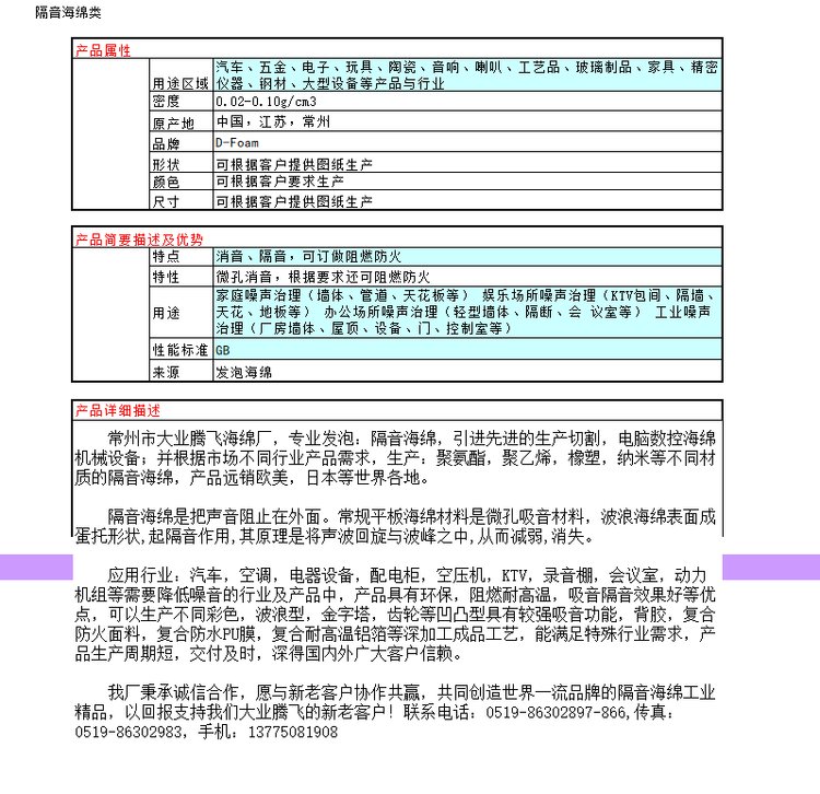 特点 | 吸音 消音、隔音,可订做阻燃防火 | ||