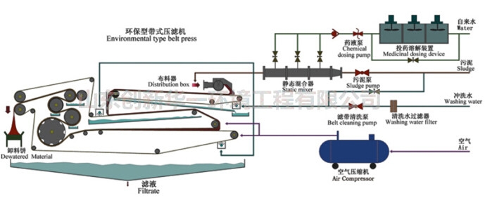 5、本机脱水网带的选用是建立在实验和实际使用经验的基础上,其透水性、耐磨性、粘性、滤饼的剥离性均根据实际物料来进行选用,保证了较好的脱水效果和网带冲洗水的较低含固量。