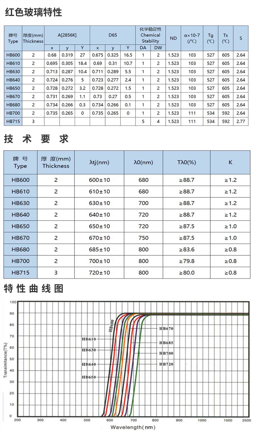 本公司供应光学玻璃,无色光学玻璃,有色光学玻璃、石英玻璃(JGS1、JGS2、JGS3)、乳白玻璃、红色玻璃(HB600、HB610、HB630、HB640、HB650、HB670、HB685、HB700、HB720)、绿色玻璃(LB1、LB2、LB3、LB4、LB5、LB6、LB7、LB8、LB9、LB10、LB11、LB12、LB13、LB14、LB15、LB16、LB17、LB18、LB19)、橙色玻璃滤光片(CB535、CB550、CB565、CB580) 、 金黄色玻璃(JB400、JB420、JB450、JB470、JB490、JB510)、青蓝色玻璃滤光片(QB1、QB2、QB2、QB4 、QB9、QB10、QB11、QB1、QB12、QB13、QB16、QB17、QB18、QB19、QB21、QB23、QB24、QB26、QB29、QB38、QB39、QB40)、紫色玻璃ZB系列(ZB1、ZB2、ZB3) 、氧化钬玻璃(HOB445)、高硼硅玻璃、耐热玻璃、耐高压玻璃、钢化玻璃、紫外玻璃(ZWB1、ZWB2、ZWB3)耐辐射玻璃、中性暗色玻璃(AB00、AB02、AB2、AB5、AB10、AB25、AB30、AB50、AB65、AB70) 、隔热玻璃(GRB1、GRB2、GRB3、KG5)、偏光镜、透镜(凹透镜、凸透镜)、棱镜、柱面镜、平面镜、滤光片、防护玻璃(FB1、FB3)、光学滤光片、有所光学玻璃滤光片、光学元件、升色温玻璃(SSB40、 SSB130 、SSB145、 SSB165、 SSB200)、降色温玻璃(SJB20、SJB80、SJB100、SJB130、SJB140)、滤色镜、偏光片、镨钕玻璃(PNB586)、选择吸收型玻璃、截止型光学玻璃、带通滤光玻璃、分光片、玻璃镜片、镀膜片、光学镀膜片、多层镀膜光学玻璃、UV镜、浮法玻璃、重火石玻璃,K9、B270、超白玻璃等等。
