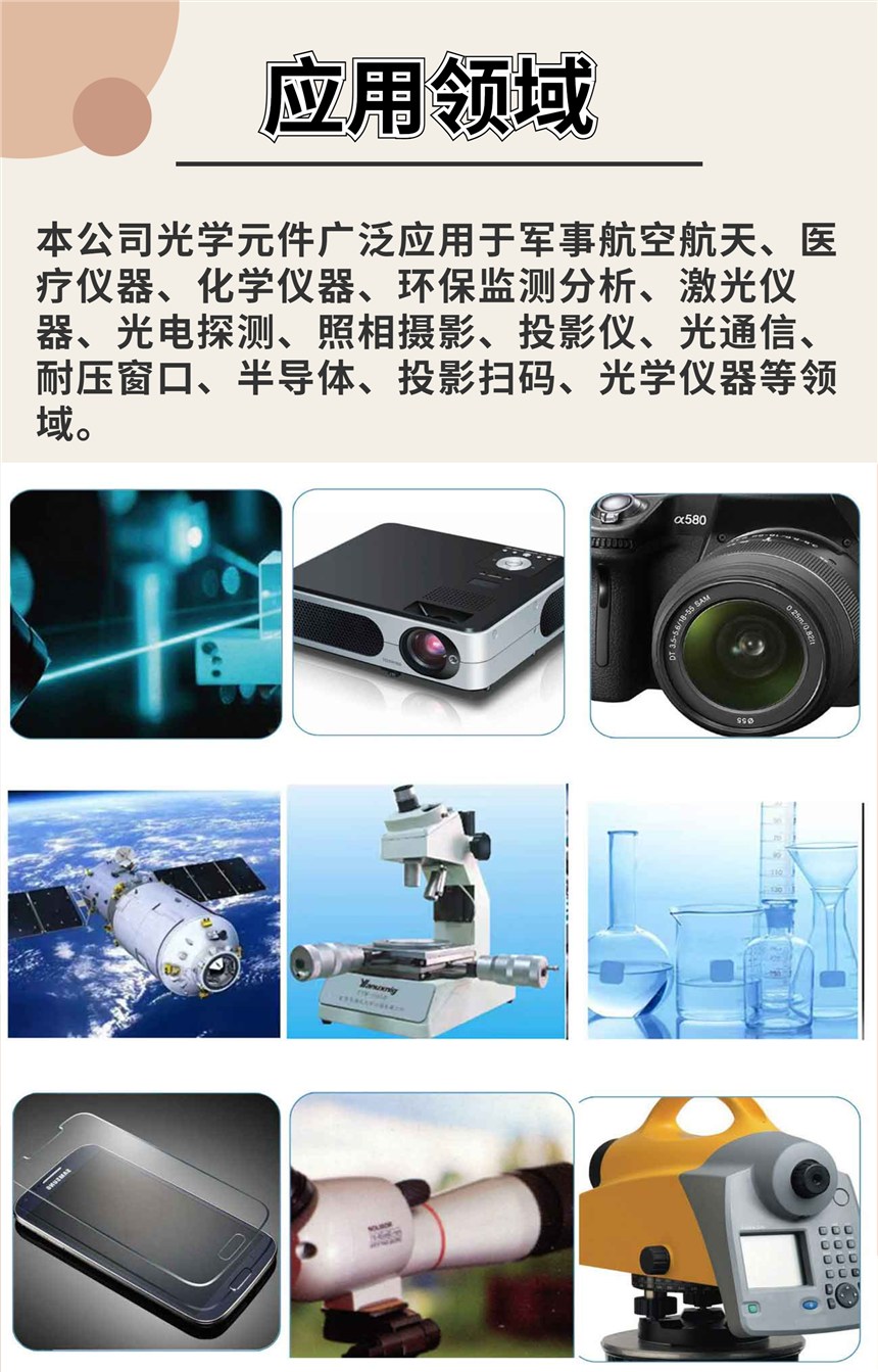 公司着力于面向新世纪发展的光学、光电、光电子、光纤通讯、仪器、仪表等行业提供基础配套产品愿为国内外朋友诚恳地服务,欢迎四海宾朋前来洽谈业务、技术合作。