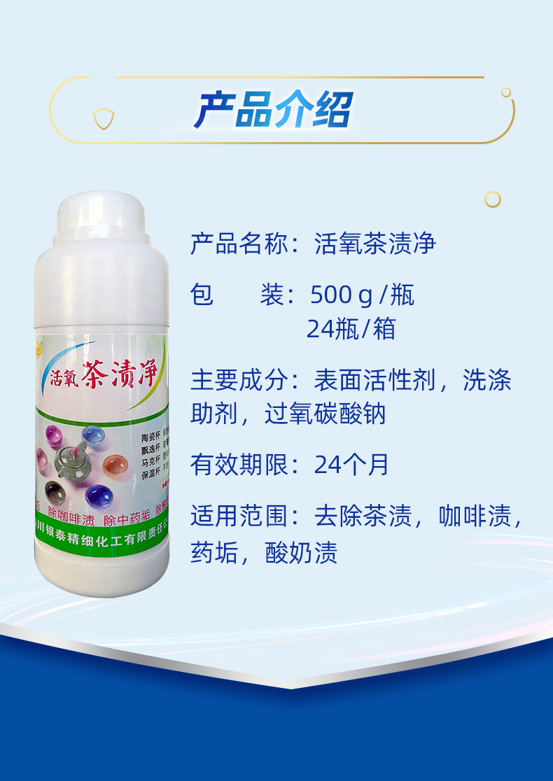 茶具除垢:本产品2小盖加入茶具中,加入60-80℃热水,静置10-30分钟后,用清水冲洗干净,如需对茶具进行全面清洗,可采用浸泡清洗的方式。