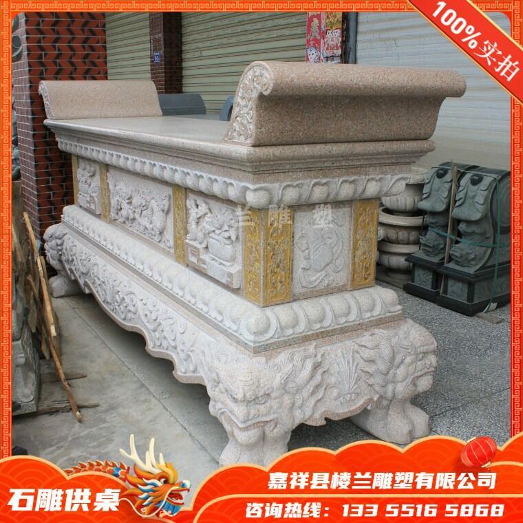 石雕供桌,在传统文化里,供桌的大小,材质,以及摆放的位置都是有讲究的,摆放不当的话,就会触犯神灵,小则生病失财,大则国破家亡。即使如今,供桌的使用还是必须遵循一定的禁忌。在风水学当中,大门风水跟供桌风水都是非常重要的,两种风水学科都 有着各自不同的风水禁忌,如果触碰到了这些禁忌那么会对家庭成员的运势命运造成极大的影响。 嘉祥楼兰雕塑设计定制石牌坊石塔石亭。