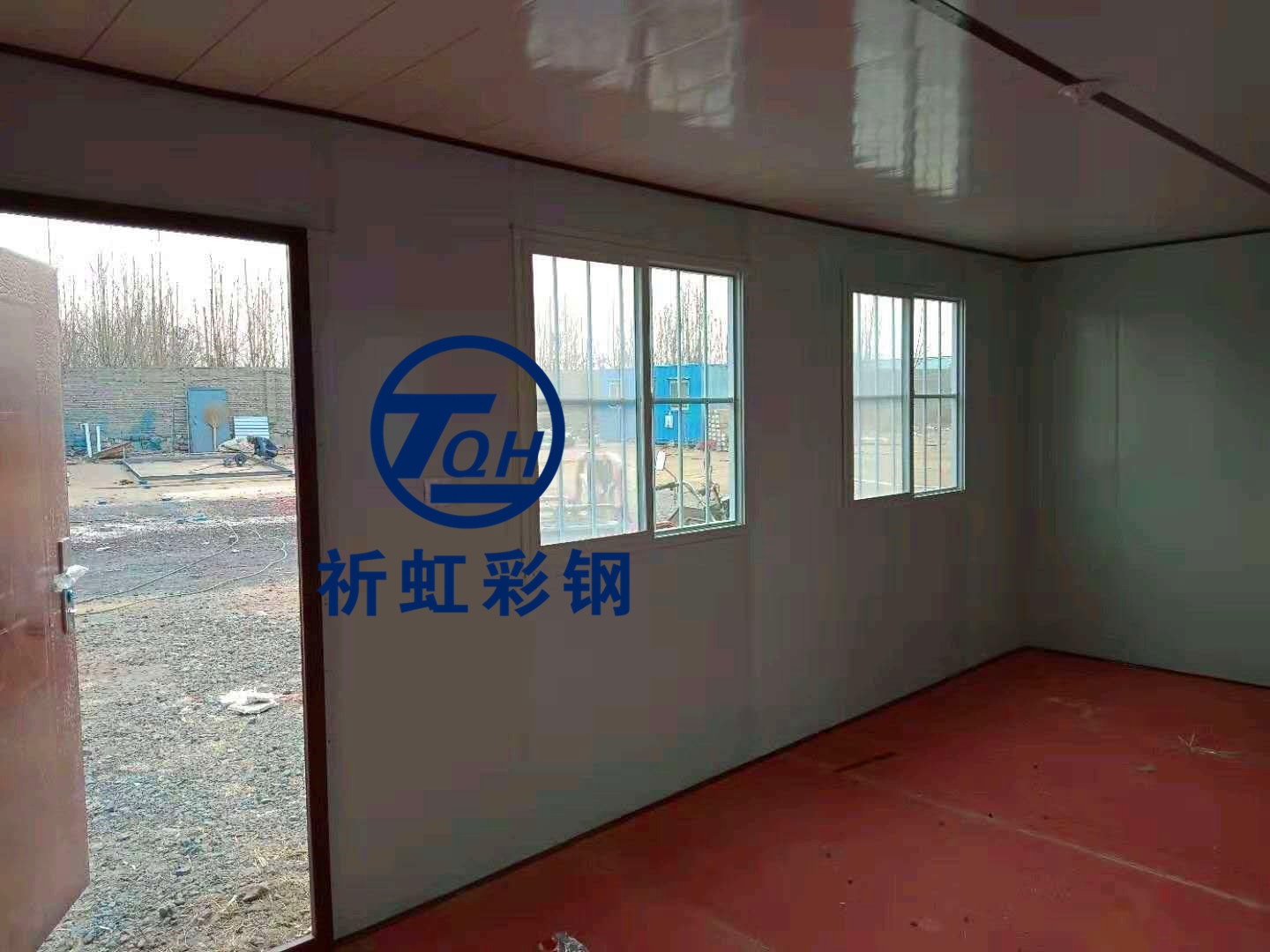 3、装修方面 集装箱活动房的地板采用瓷砖铺设,墙体、天花、水电、门窗、排气扇等一次性装修,久性使用,节能环保又美观;而彩钢房的墙体、天花、水管、电路、照明、门窗等设施需要现场安装,工期长、损耗大、还不够美观。