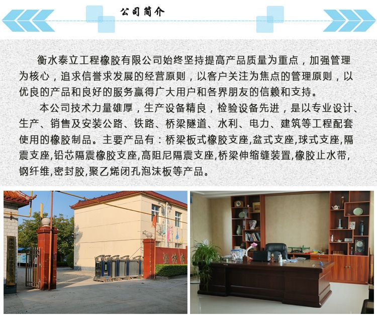 我们可以按用户要求生产各种形状、尺寸的橡胶止水带,另外还可为不同工程、不同部位的需要备有十字型、丁字型、斜度型和内外转角型产品,可适用于任何设计要求。橡胶止水带在运输时,应要避免阳光直射,勿与热源、油类及有害溶剂接触。所以在止水带定位和混凝土浇捣过程中,应注意定位方法和浇捣压力以免止水带被刺破,影响止水带的防水效果。