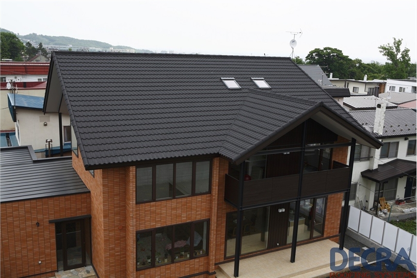 彩石金属瓦的搭接可以从左往右,也可以从右往左,都是互锁的。但是搭接部位应当背向盛行风向、雨水流向或是雨水排出管和屋面天沟。铺装顺序一般从檐口由下至上向屋脊处铺设。