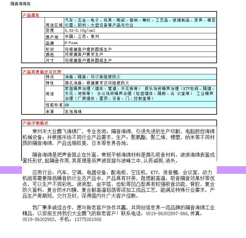 特点 | 吸音 消音、隔音,可订做阻燃防火 | ||