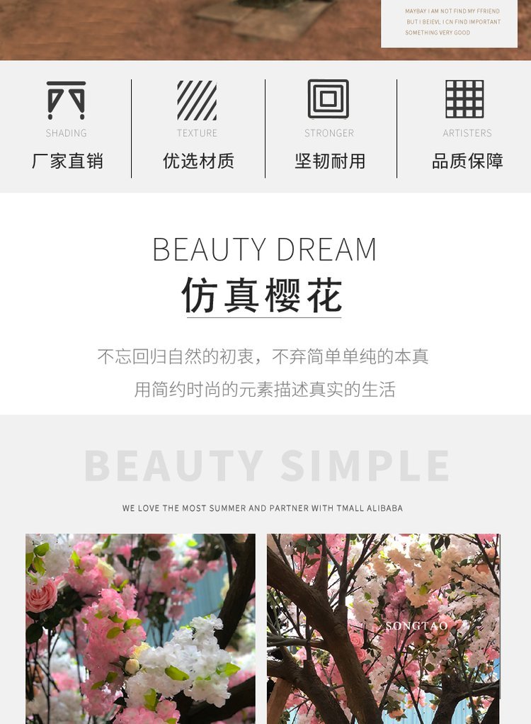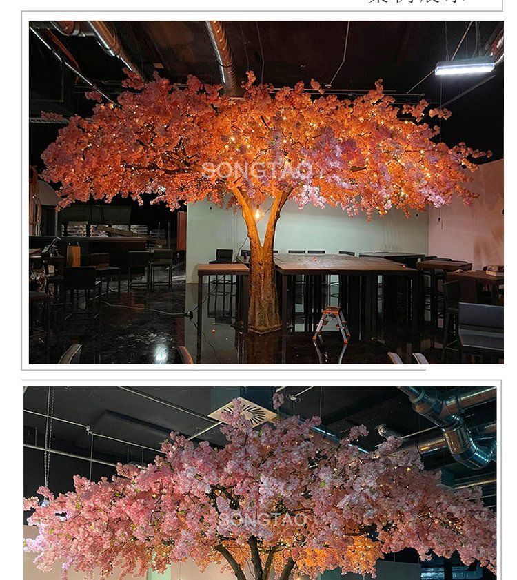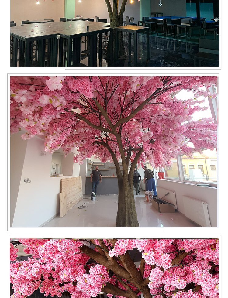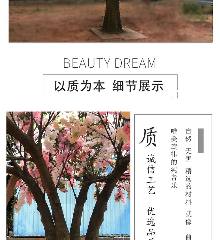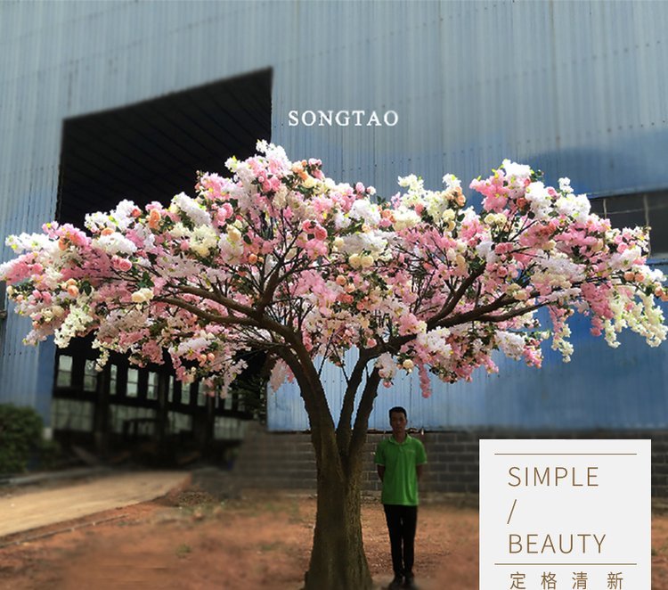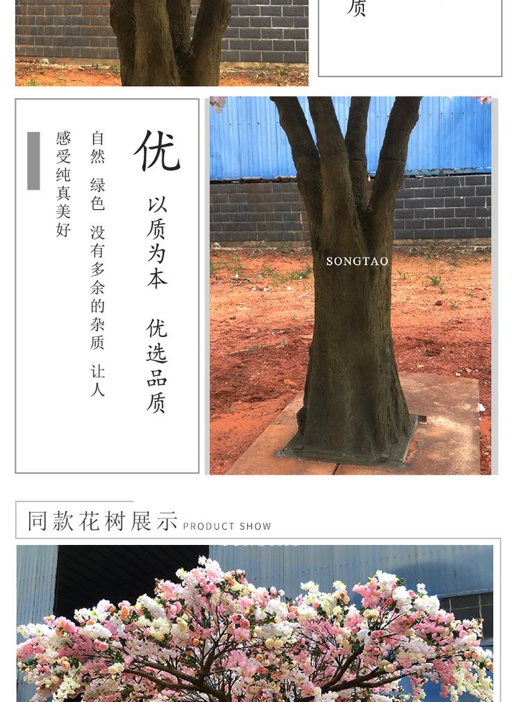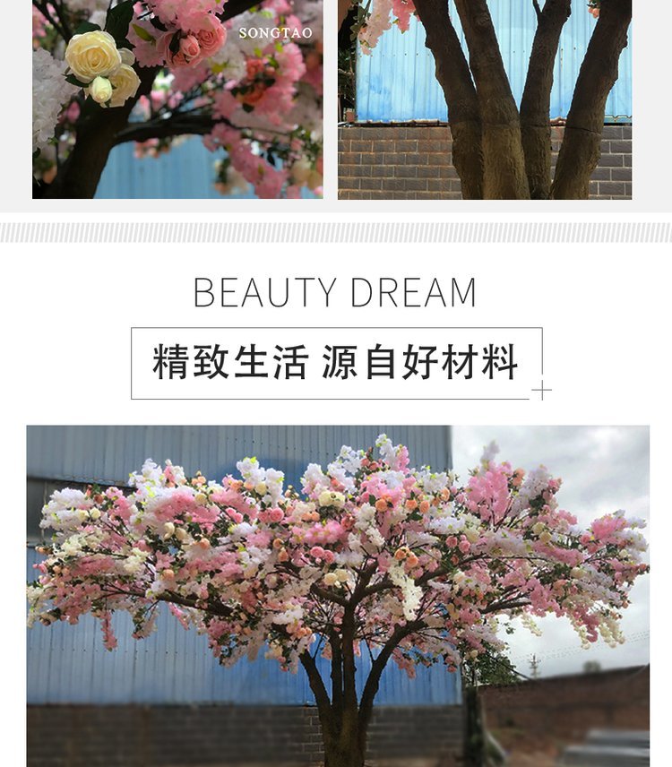 产品材质:花朵:绢布 全新PE ?树杆:玻璃钢 钢结构/真杆 |
