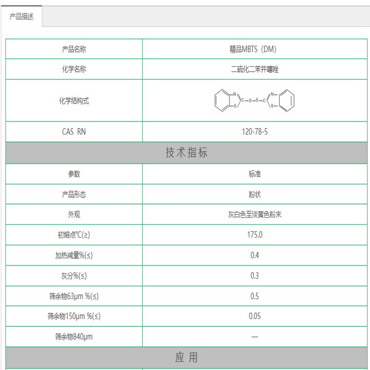 产品名称 | 二硫化二苯并噻唑 | ||