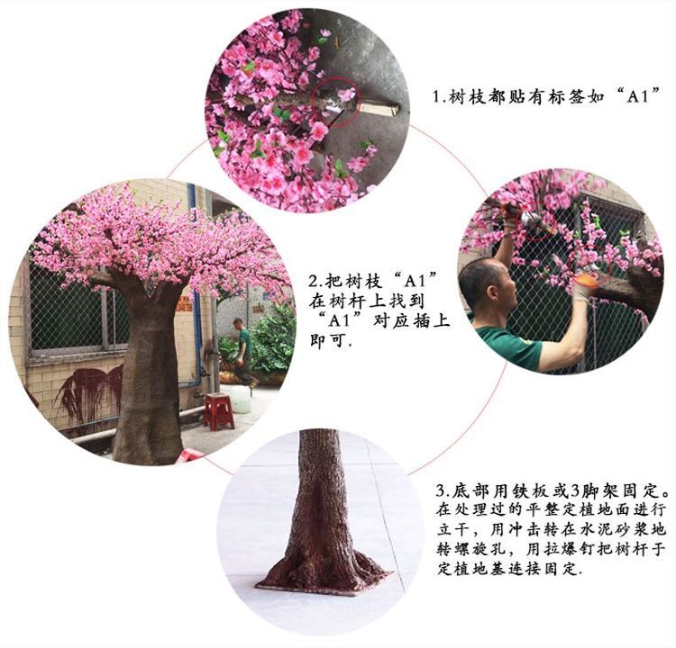 产品材质:玻璃钢树内、内部钢架、树叶高级油光布、全新进口塑料、有底板固定。 |