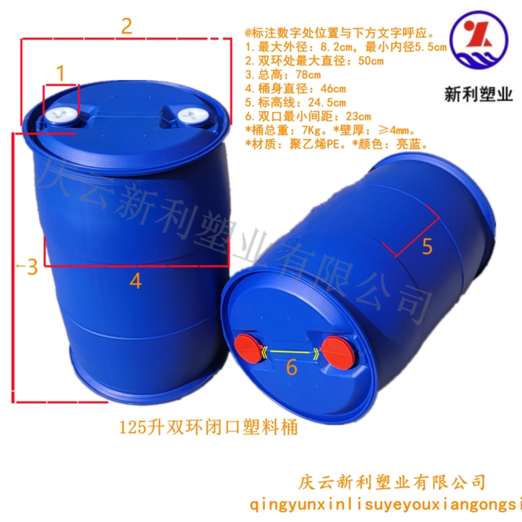 小口100公斤塑料桶125公斤塑料桶200公斤塑料桶庆云新利塑业有限公司生产。