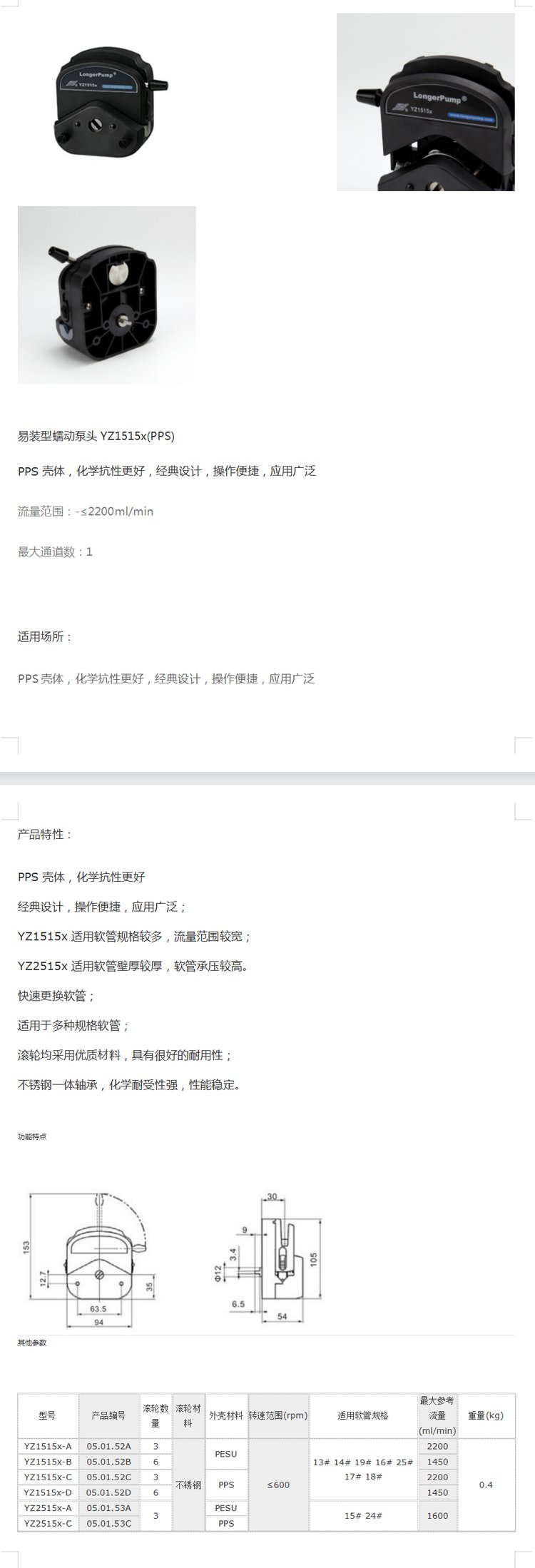 规格 | 易装型蠕动泵头YZ1515x(PPS)mm | ||