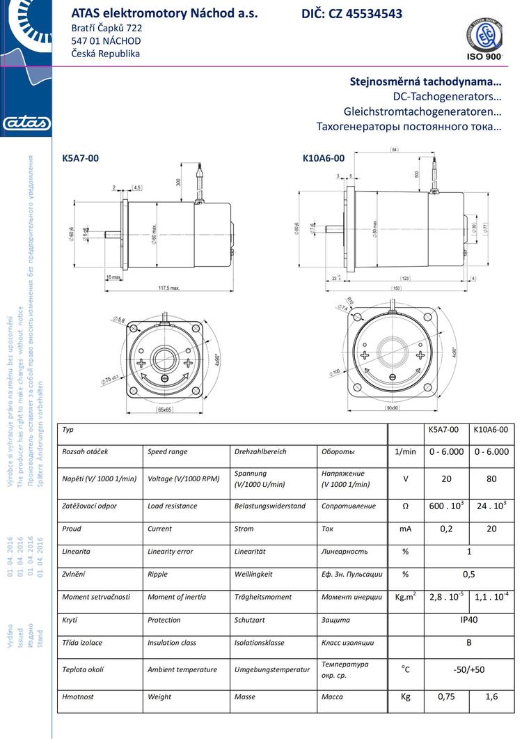 atas NACHOD K10A6-00 80V/1000 1/min max.6000 1/min R>50 Ohm/1V 测速电机,捷克制造