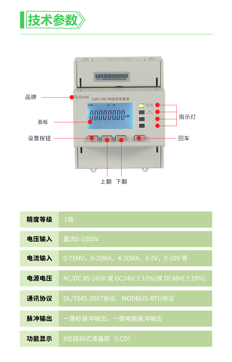 安科瑞DJSF1352-RN/S光伏新能源直流电能表 接分流器 0.5级双向计量 是否支持加工定制 | 否 | ||