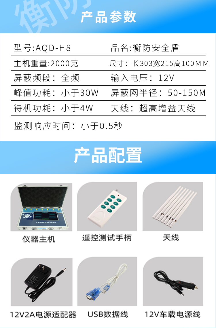 配件配置 | 主机 7根天线 软件升级线 12V车载电源线 | ||