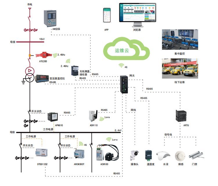 安科瑞指导用户完成智能仪表、电流互感器、剩余电流互感器、温度传感器、门磁、网络摄像机、无线模块等的安装和调试,用户将数据上传至安科瑞变电所运维云平台,委托安科瑞管理,按规定/约定收取软件基础费用和托管费用。