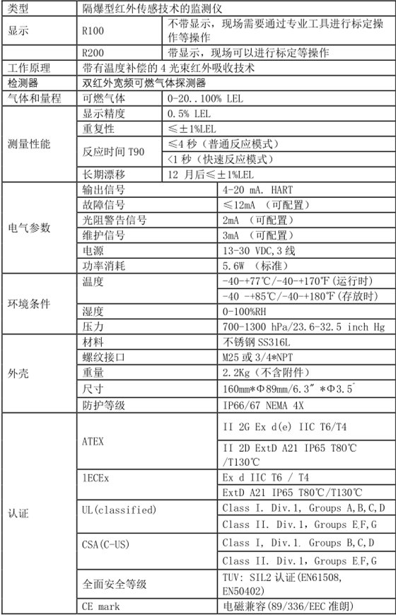 工作原理 | 带有温度补偿的4光束红外吸收技术 | ||