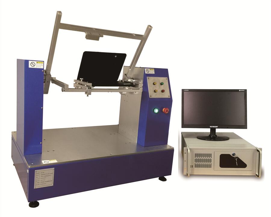 本全自动转轴扭力耐久试验机可测试Notebook上盖在多次打开、关闭后,转轴扭力衰退情形,可每次量测转轴扭力值并记录曲线变化及绘制扭力衰减寿命曲线图,改良目前必须把转轴拆卸后才能量扭力的不方便。利用Windows窗口画面设定,操作简单方便,且所有数据皆可储存(试验条件、扭力-角度曲线图、寿命曲线图、检查报表…等等)。