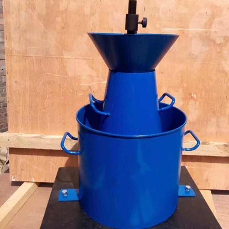 1.把本仪器放在坚实水平的平台上,用湿布把容器、坍落度筒、喂料口内壁及其它用具湿润。