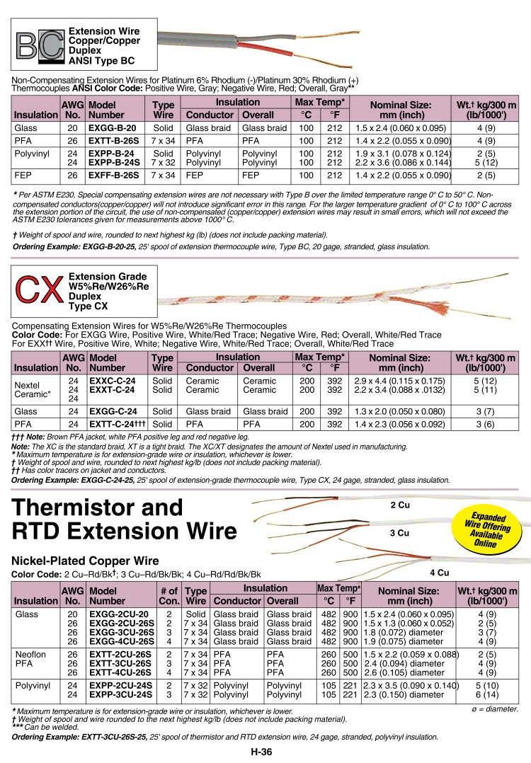 热电偶线 EXGG,EXTT和EXPP系列