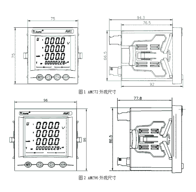 AMC系列智能电量采集监控装置,是针对电力系统、工矿企业、公用设施、智能大厦的电力监控需求而设计的智能仪表,它集成电力参数的测量(如单相或者三相的电流、电压、有功功率、无功功率、视在功率、频率、功率因数)以及电能监测和考核管理。同时它具有多种外围接口功能可供用户选择:带有RS485通讯接口,采用MODBUS-RTU协议可满足通讯联网管理的需要;4-20mA的模拟量输出可与测量的电参量相对应,满足DCS等接口要求;带开关量输入和继电器输出可实现断路器开关的“遥信”和“遥控”的功能。采用高亮度LED/LCD显示界面,通过按键来实现参数设置和控制,非常适用于实时电力监控系统。可以直接取代常规电力变送器及测量仪表。作为一种智能化、数字化的前端采集元件,该仪表已广泛应用于各种控制系统、SCADA系统和能源管理系统中。