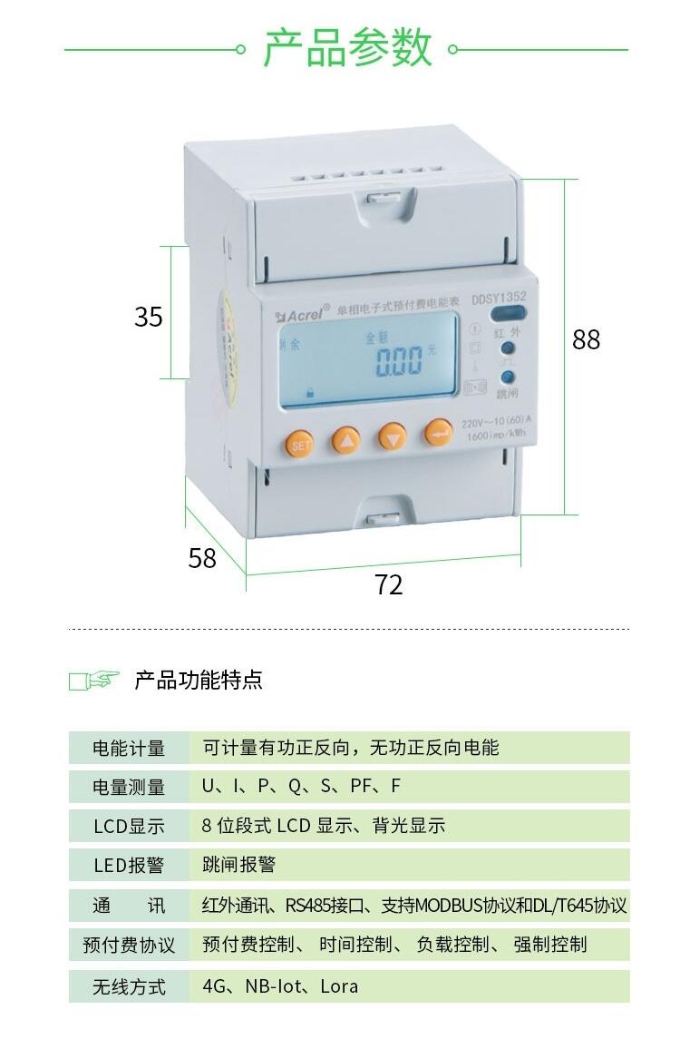 安科瑞DDSY1352-Z预付费电表 支持射频卡充值、远程充值 内控功能